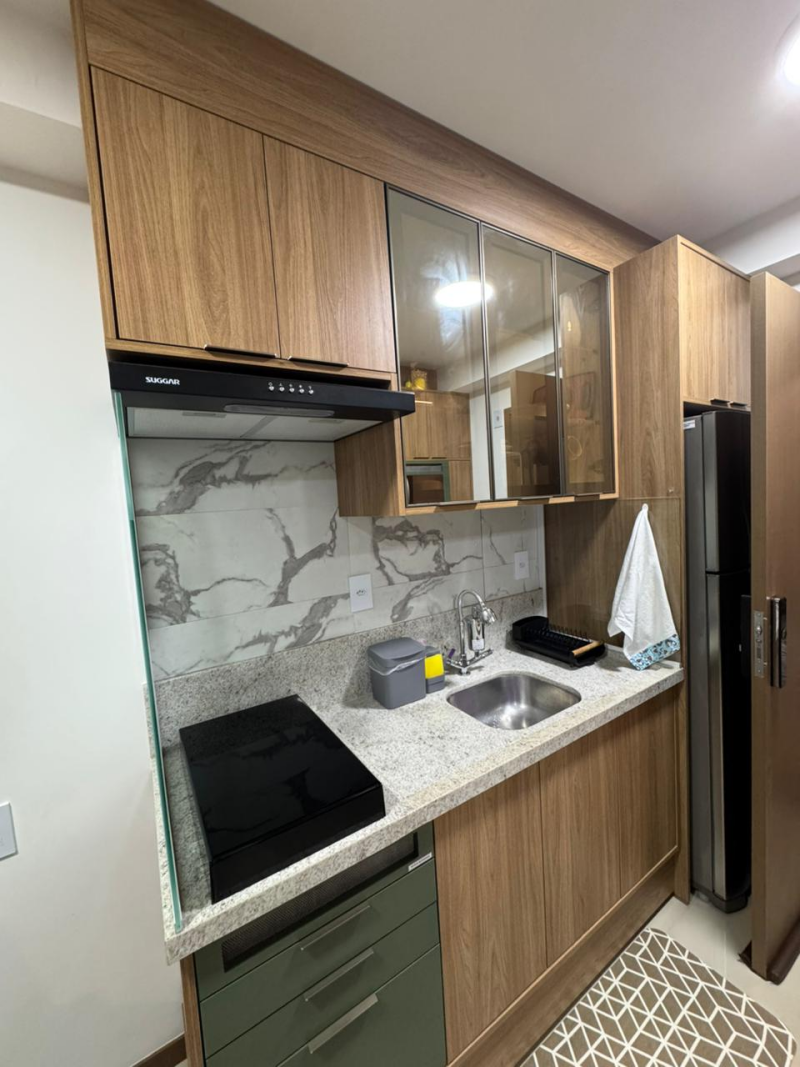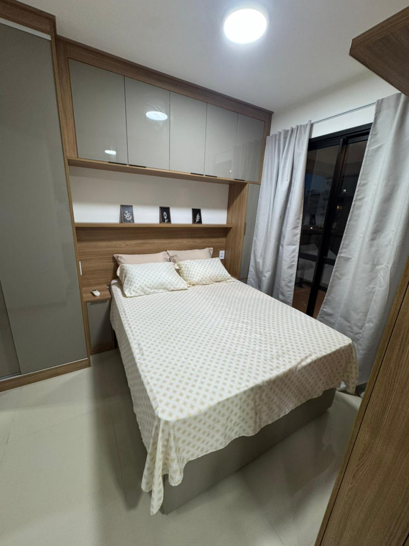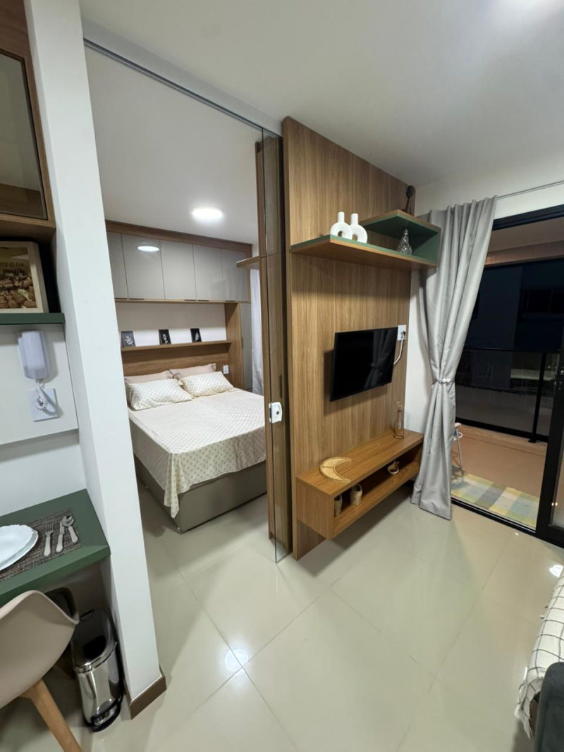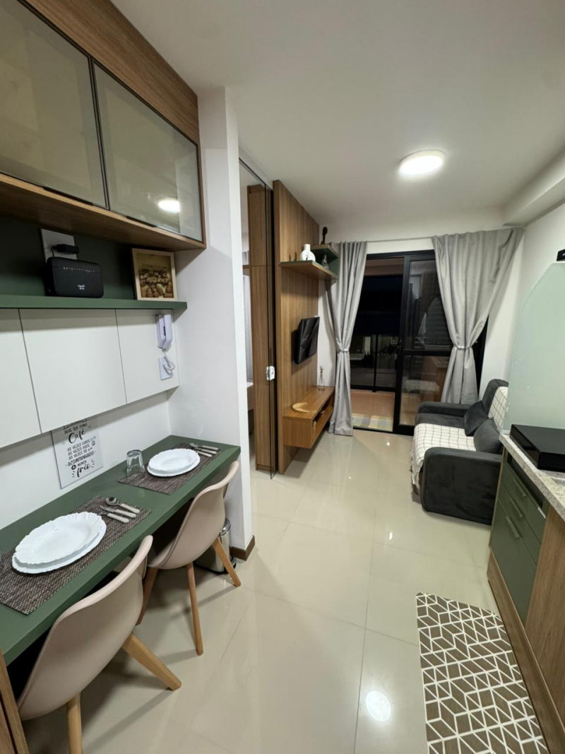 Alugo um excelente apartamento em um dos melhores empreendimentos da cidade, com uma área privativa de 32m² e direito a uma vaga de garagem, esse é o apartamento ideal para pessoas que buscam conforto e praticidade em um só lugar. O imóvel é composto por uma sala de estar, cozinha, varanda gourmet, quarto e sanitário, além de contar com móveis planejados por todos os cômodos e piso em porcelanato.