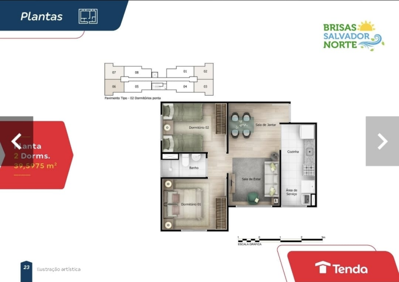 Vendo apartamento novo nunca habitado antes, situado no último andar do edifício, com pintura completa e acabamento fino, contando com uma área privativa de 42m², 2 quartos, banheiro social, sala, área de serviço, cozinha com armários e direito a 1 vaga de garagem coberta.